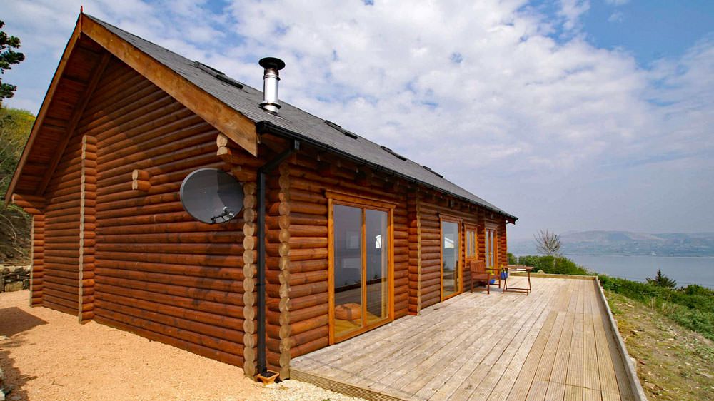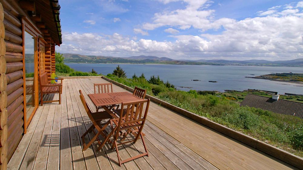 Inniskil Lodge is 5 mins from Rathmullan and is a really lovely log cabin which is situated in one of the most outstanding locations in Donegal. The authentic log cabin is constructed from Scandinavian Redwood and nestles discreetly on an elevated site with exquisite panoramic sea views over Lough Swilly towards the hills of Inishowen providing spectacular scenery across the Lough and beyond. The extensive decked area at the front of the cabin takes full advantage of the fantastic sea views and enables the extensive open plan living space to be extended to a delightful and resplendent outside space. The spacious Cabin is equipped & furnished to a very high specification and is equally suitable for a romantic getaway or a family holiday.