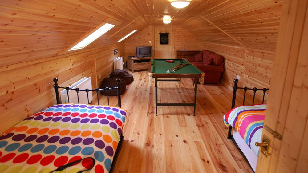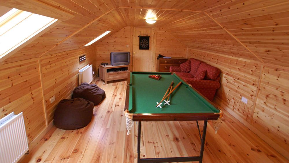 Pool table in upper floor room