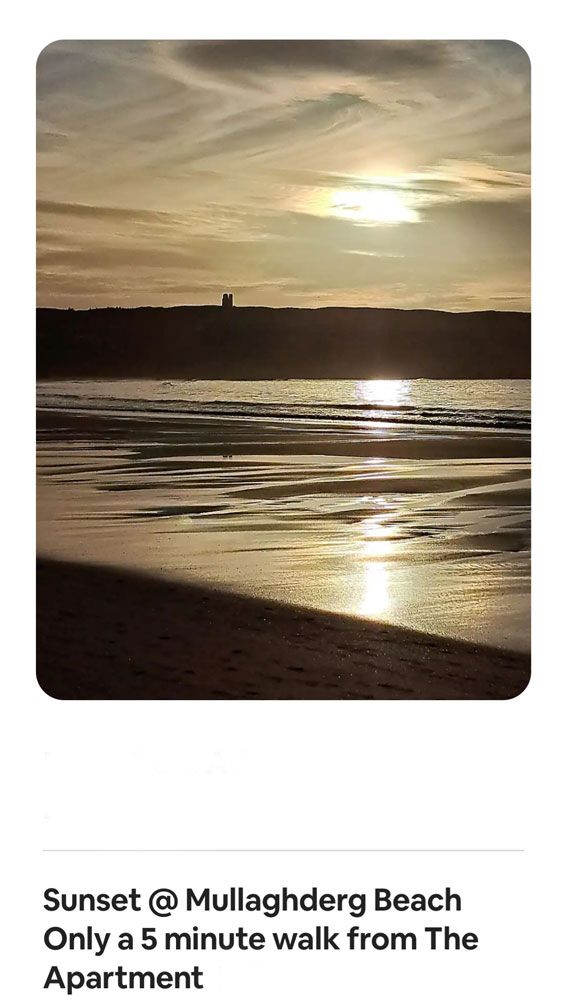 The hoilday apartment is a short walk from the beautiful Mullaghderg Beach