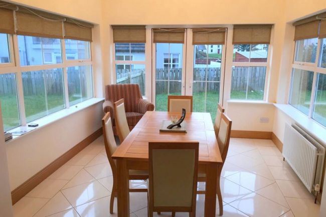 A superbly located holiday home situated in the popular beach and golfing resort of Dunfanaghy in North Donegal. Killahoey Blue Flag Beach and Dunfanaghy Golf Links are literally on the doorstep of the holiday home. All the facilities in the village – hotels, restaurants, pubs, craft shops and art galleries are within easy walking distance. You could easily park your car up and leave it untouched for the length of you stay! But if you decide to do some touring then the coastline around the holiday home abounds with rugged peninsulas, sandy beaches, small harbours and majestic mountains