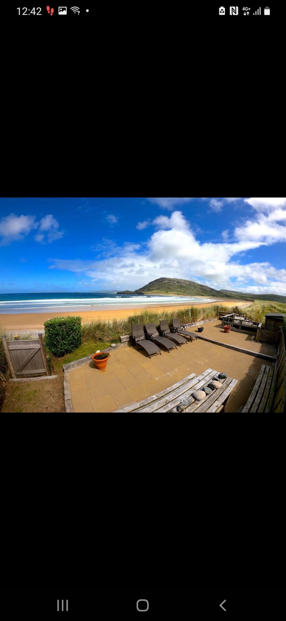 This beautifully maintained three bedroom bungalow that sleeps six, stands on a unique 0.75 acre site which has direct frontage onto the scenic beach at Tullagh Strand, just outside the popular village of Clonmany.The house has a Private beach front bar area . The house is set in beautifully manicured gardens which lead onto a large raised decking area with uninterrupted views of Tullagh beach with a gate opening straight onto the sand .Also an ideal place to stay if you wish to visit the Historic Walled City of Derry - the 2013 City of Culture. Tours of the city and booking of events can be arranged. This house is the place to stay if you enjoy hill WALKING as we are located next to some of the most beautiful walking trails in Donegal. If you come to the beach house you can enjoy some great FISHING on the beach below the private decking area.Owners own holiday home is located in the grounds of the holiday cottage . NO PETS ALLOWED HOUSE SLEEPS STRICTLY A MAXIMUM OF SIX PEOPLE