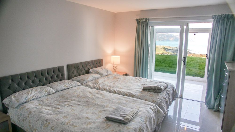 Large 3-bedroom luxury apartment with stunning sea views over the Atlantic Ocean and Horn Head. Located just minutes from the beautiful sandy Killahoey Blue Flag beach, Dunfanaghy Golf course, and the popular seaside village of Dunfanaghy, with its shops, pubs and restaurants. This extra spacious ground floor apartment would make an ideal base for a family holiday in the beautiful northwest of Ireland